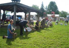 Saturday, after Best in Show, we held a wine & cheese reception at the Matheson's campsite. It was a lovely evening that was enhanced by a BBQ dinner hosted by Eukanuba for all the exhibitors at the shows. We all joined the spectators to watch our very own junior, Sophie Cairns, compete and win her class at the Zone 5 Junior Handling Finals.