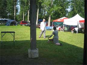 Saturday, after Best in Show, we held a wine & cheese reception at the Matheson's campsite. It was a lovely evening that was enhanced by a BBQ dinner hosted by Eukanuba for all the exhibitors at the shows. We all joined the spectators to watch our very own junior, Sophie Cairns, compete and win her class at the Zone 5 Junior Handling Finals.